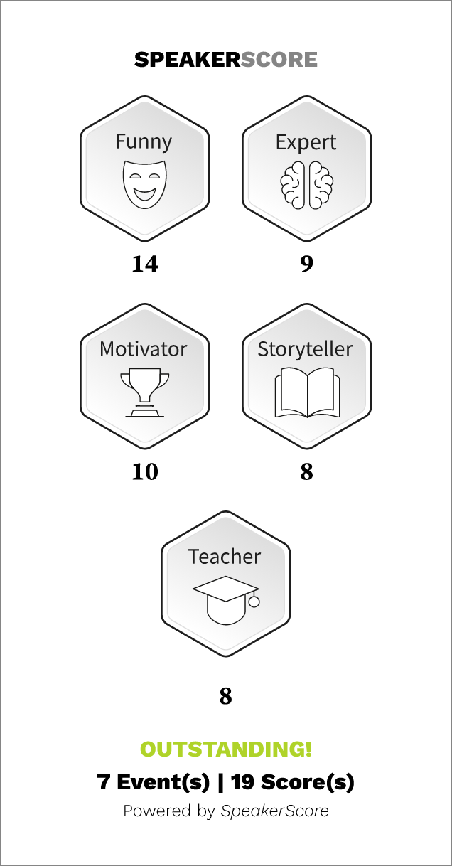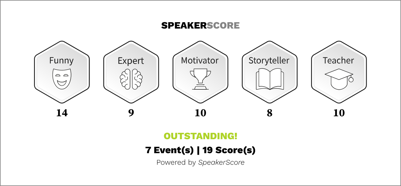 You can share references you've received from your audience. You can share your badges and your SpeakerScore - a combined score from all your events or just the score from one event.